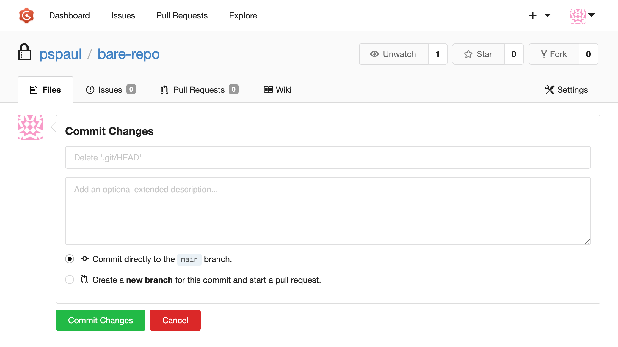 We will start with CVE-2024-39931, a path traversal vulnerability that allows attackers to delete arbitrary files on the system. The vulnerability fittingly exists in the file deletion feature of the web UI. To delete a file from a repo, a user clicks the delete button and is presented with a confirmation page: