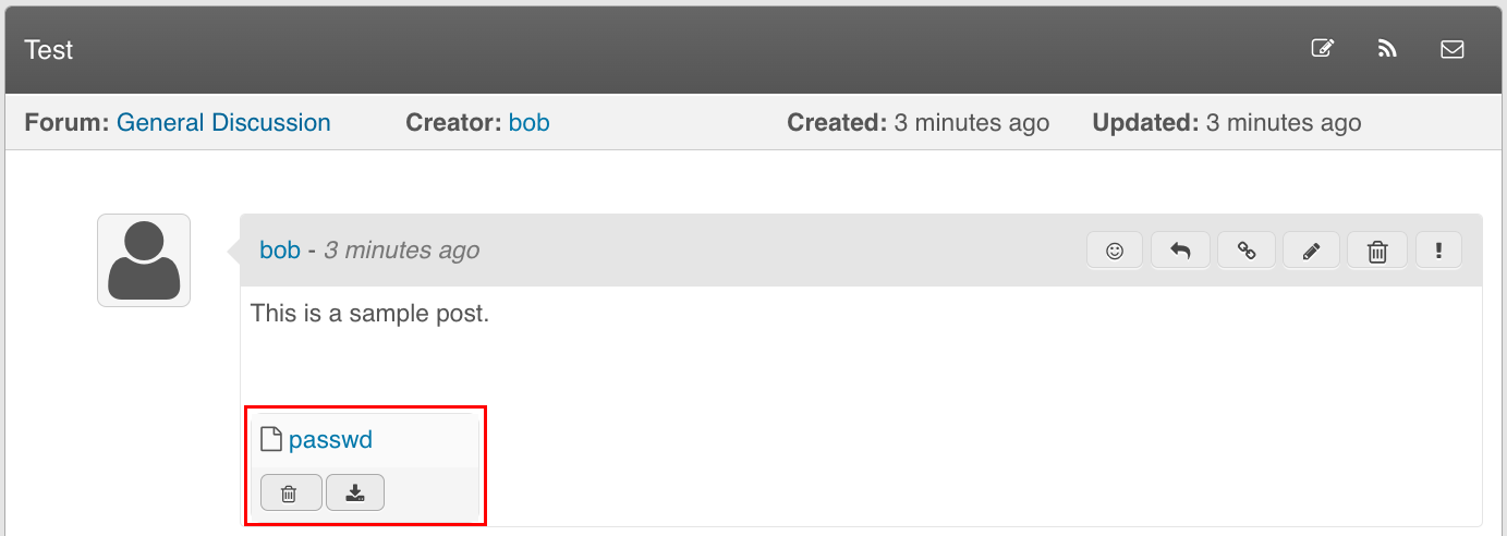 Posts added to a discussion can have an optional file attachment:
