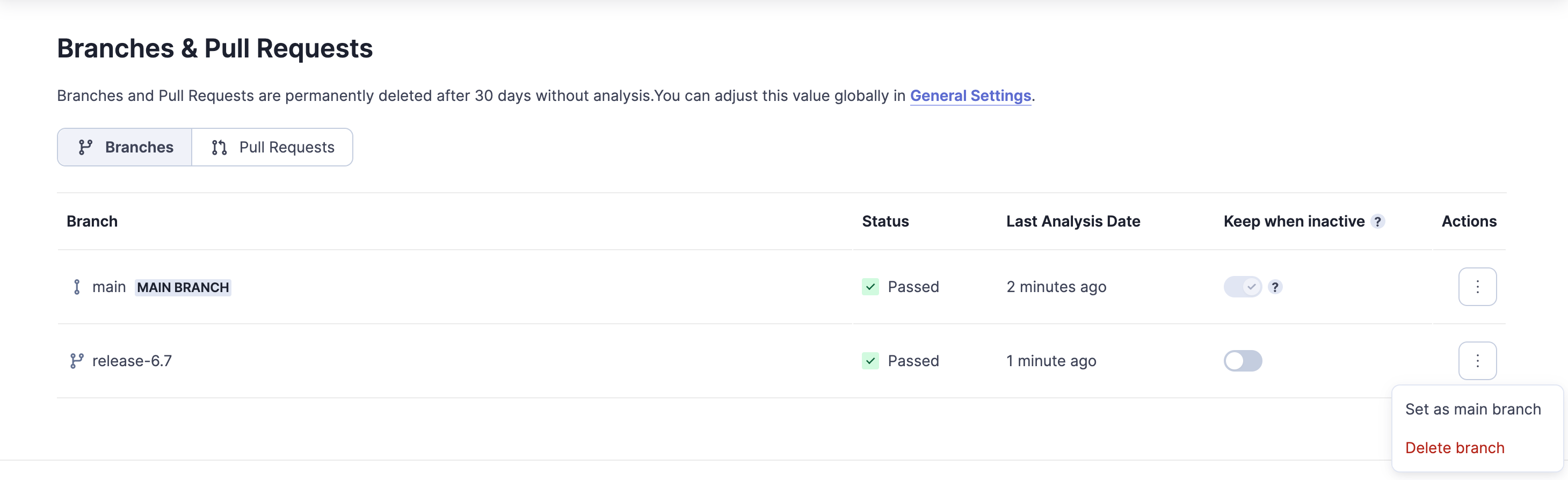 We introduced support for Branch Analysis all the way back in SonarQube 6.7. To put it kindly, branches were somewhat “hacked” onto the existing project component. This meant that there was no real differentiation in the underlying data model between a project and the main branch of a project. The result? It has never been possible to change the main branch of a SonarQube project.