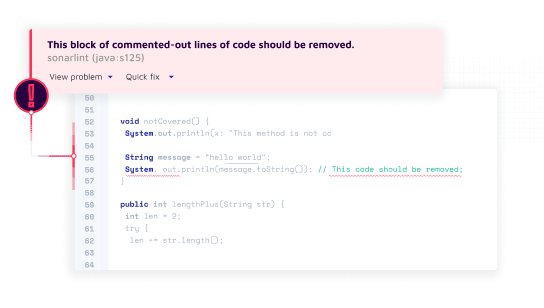 The IDE is your intelligent coding assistant. Go further with SonarQube for IDE static code analysis for fast, automated feedback on bugs, maintainability issues, and security vulnerabilities. Our powerful language-specific analyzers contain hundreds of rules, helping you find and fix code issues, fast.