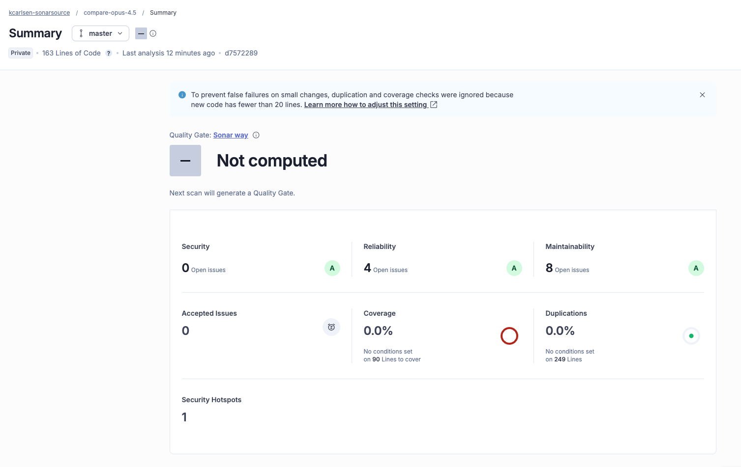 The model prioritized safety but left some technical debt. SonarQube flagged several code smells, for example, detecting that Claude Opus 4.5 used a standard array where a Set would have been faster, and declared variables that didn't need to exist