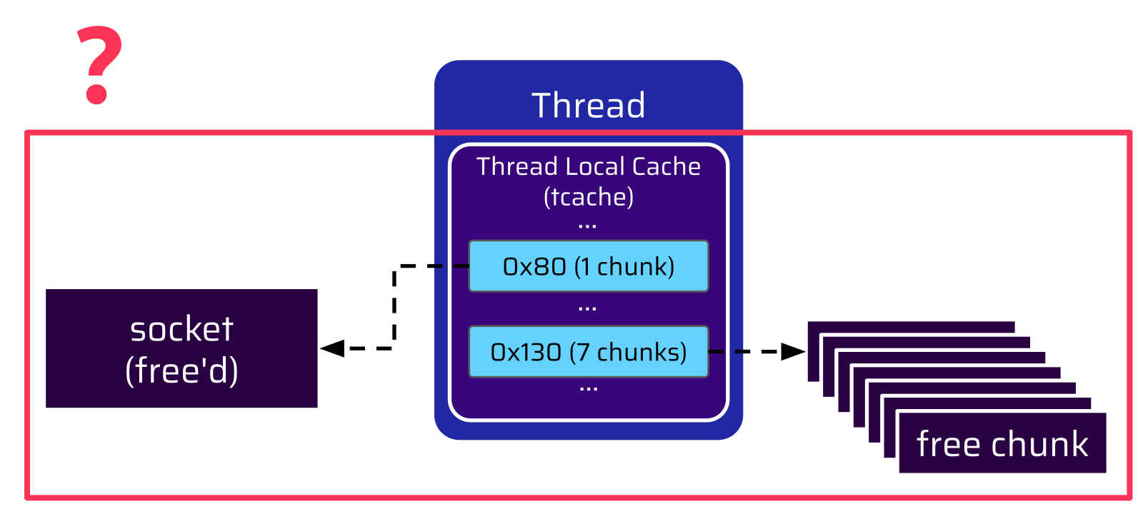 But then we were wondering: Since the thread terminates… What is actually happening to its tcache data structure?