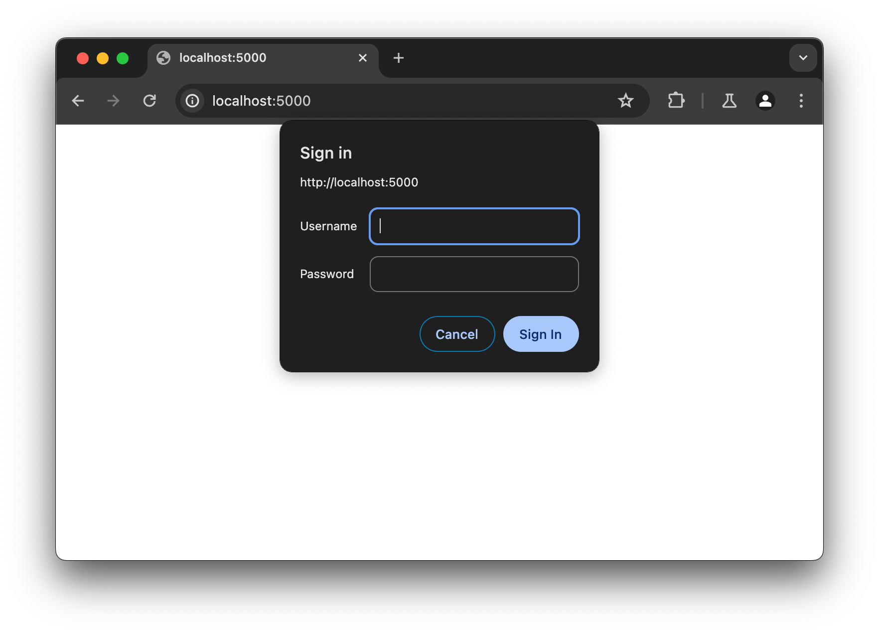 Before trying to validate the CSRF hotspot, let's see how pyspider implements authentication. Setting up the application using the --need-auth flag, and trying to access the web interface we are introduced to the following browser-default login prompt: