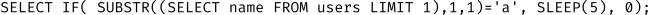 This scenario can be compared with a blind SQL injection. Attackers typically use a time-based approach to exploit this vulnerability. For example, the following SQL query could be used to determine if the first character of the first name in the table users is 'a':