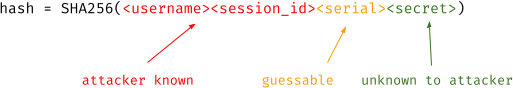 return hash("sha256", $username . $session_id. $user_secret . $secret);