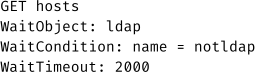 The WaitObject header is required, which means that an attacker has to know the name of the object, whose data the attacker wants to retrieve. The easiest but also noisiest approach an attacker may use is a word list attack. By using the following query, an attacker could determine if a host with the name ldap exists:
