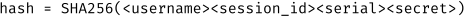 return hash("sha256", $username . $session_id. $user_secret . $secret);
