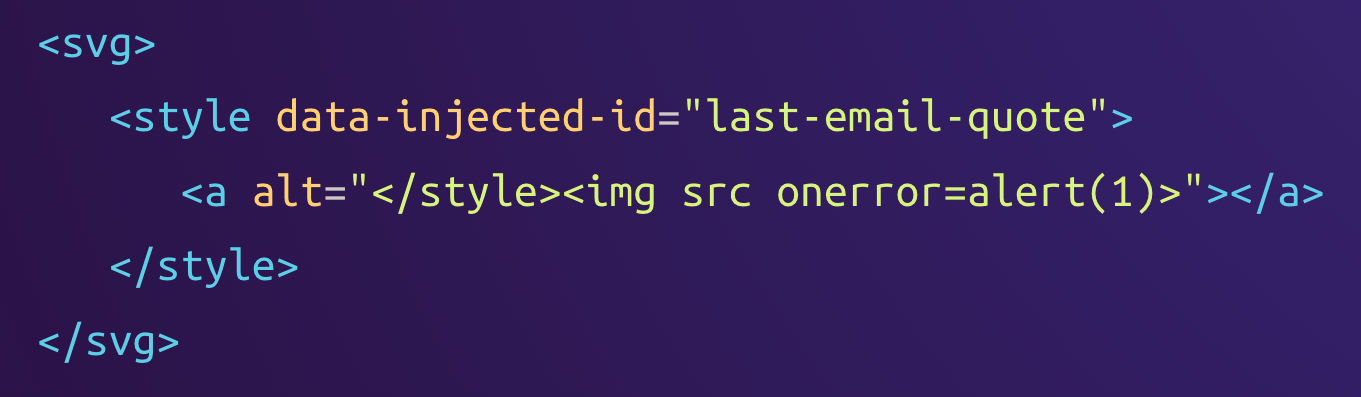However, the <style> element was also moved outside the <svg> element along with its predecessor. This situation is familiar from last week's Proton Mail vulnerability! During sanitization, the <style> element is parsed with SVG rules, while it is parsed with HTML rules during the re-parsing.