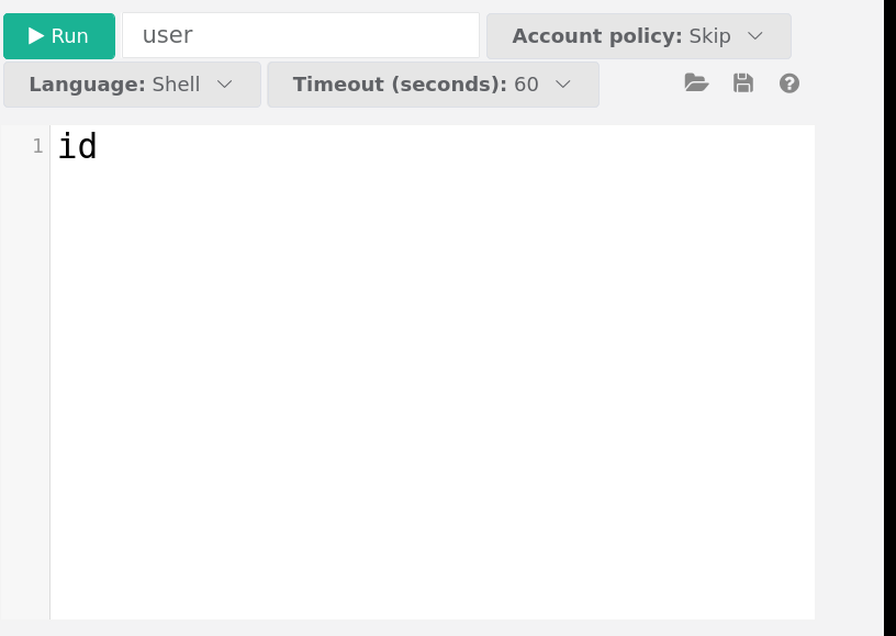 Choosing to run a shell command on an instance involves a straightforward input window and the subsequent display of the command's result: