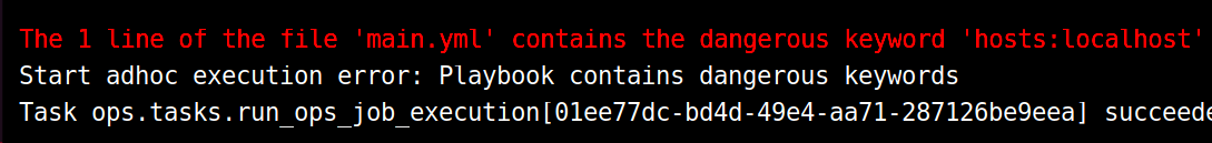 This is due to Fit2Cloud, the maintainers of JumpServer, being aware of this risk and implementing a playbook verification using a blocklist of dangerous keywords within the YAML file content: