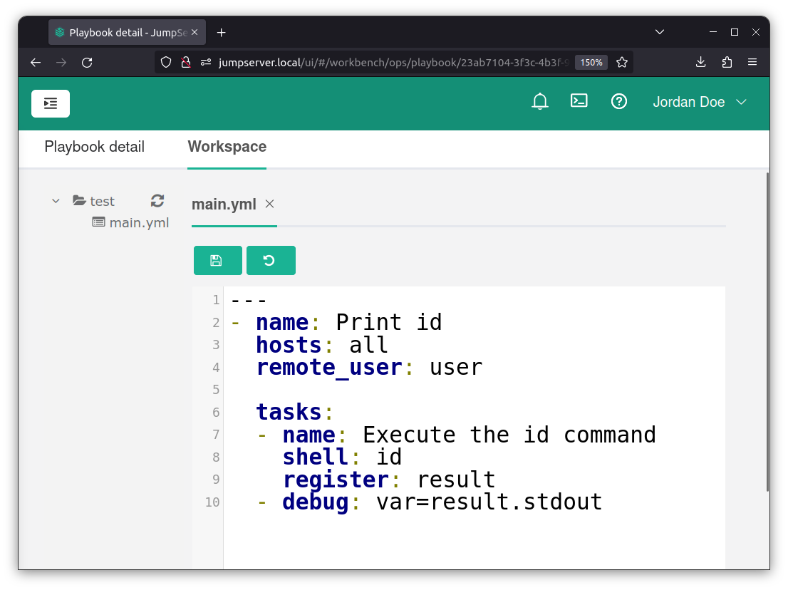 In JumpServer, users can choose the simple command input shown before, or directly write Ansible YAML playbook file.