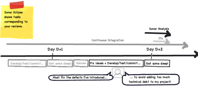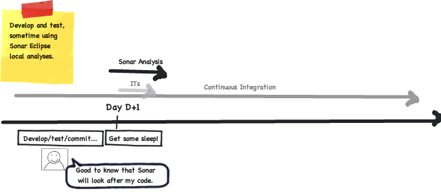 If you wish, you can also use Sonar Eclipse during your development to run local analyses and get realtime feedback. This is not yet optimum since you can only run full analysis and we are working hard on supporting incremental analysis.