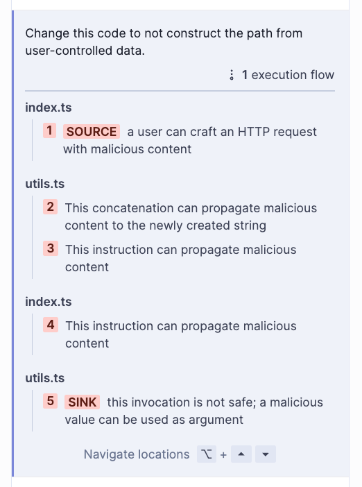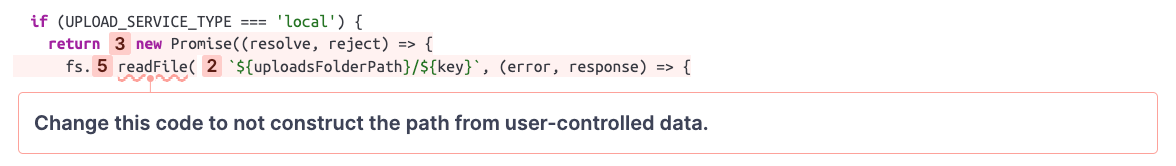In this case, the path is used to read a file and return its contents. It is pretty clear that the code is not intended to allow users to read every file on the file system. The developers likely wanted to give users access to files in the upload folder only, so SonarQube Cloud's finding is, in fact, a vulnerability!