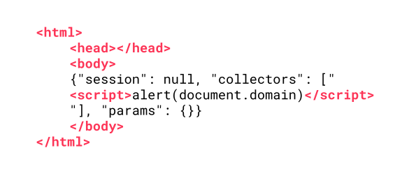 }So yes, we have full control over them. URL parameters like profile=0, collectors=<script>alert(document.domain)</script> is enough to trigger the vulnerability. The resulting DOM, as seen by the client's browser, is as follows: