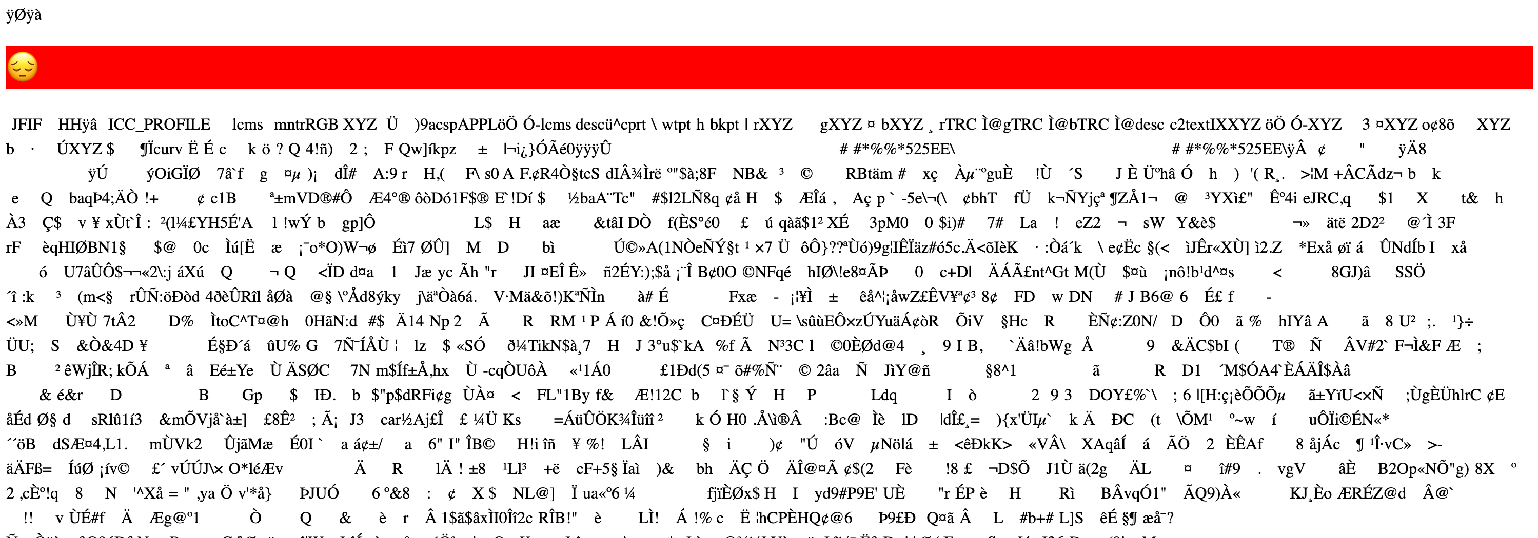 Let's take the example of an image returned with the wrong content type information, for instance, text/html. The browser displays gibberish–the ASCII representation of the file's bytes: