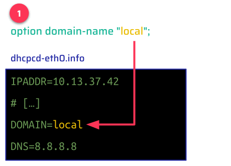 These values are stored in the same way you declare shell variables, with an uppercase name, an equal sign, and the value. These values are not encoded nor sanitized in the process–they can be arbitrary strings. Remote attackers have very limited control over values like IP addresses, but more control over other DHCP options like domain-name.