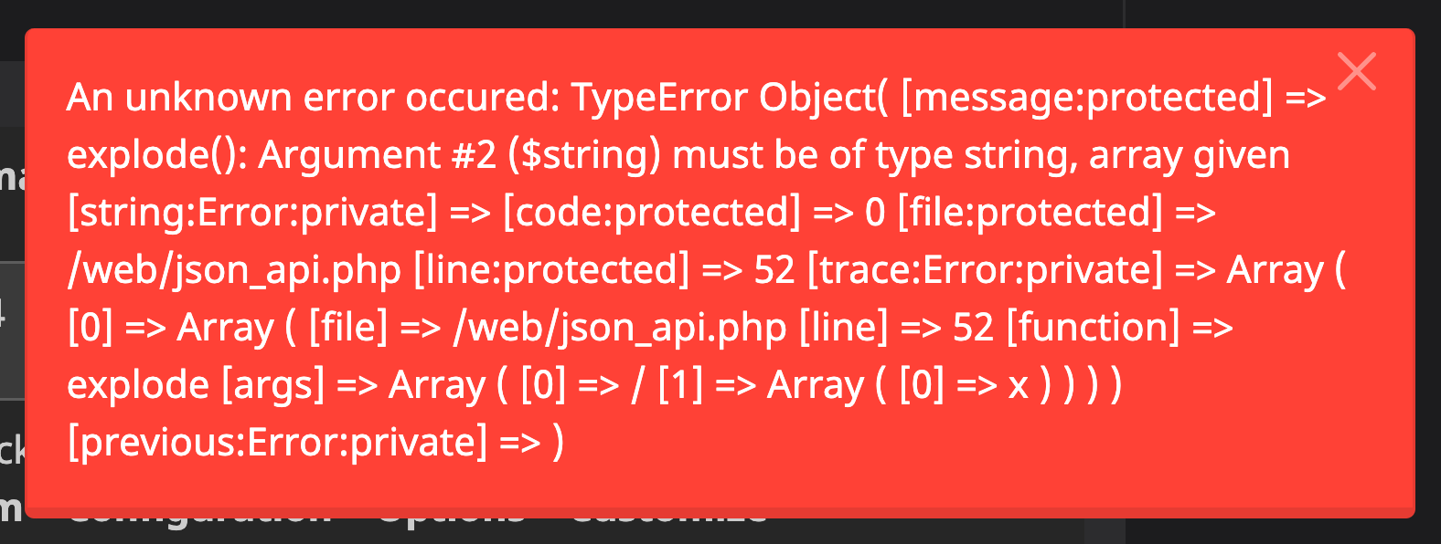 An unknown error occured: TypeError Object(