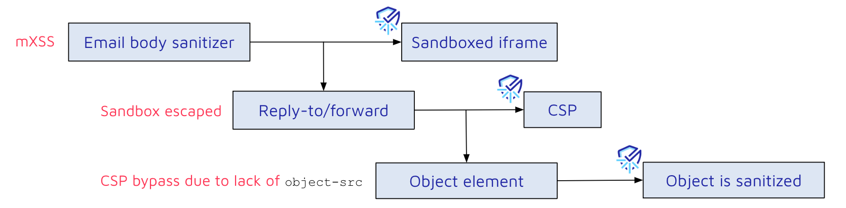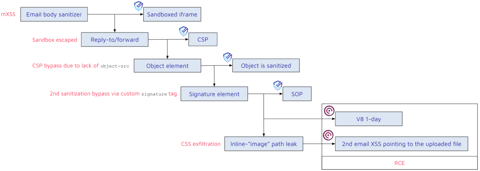 In this blog, we covered a vulnerability chain that attackers might exploit to achieve RCE on a victim’s computer simply by manipulating them to click “reply-to” or “forward” from a malicious email. We explained the importance of avoiding the dangerous Desanitization pattern and outlined the significance of a strong CSP.