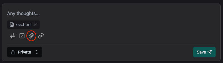 But what if the workspaceStorageSetting isn’t configured to store files locally? In this case, an attacker can use the built-in feature to share files. Since the user-controlled files are served under the same domain without any restriction/sandboxing.