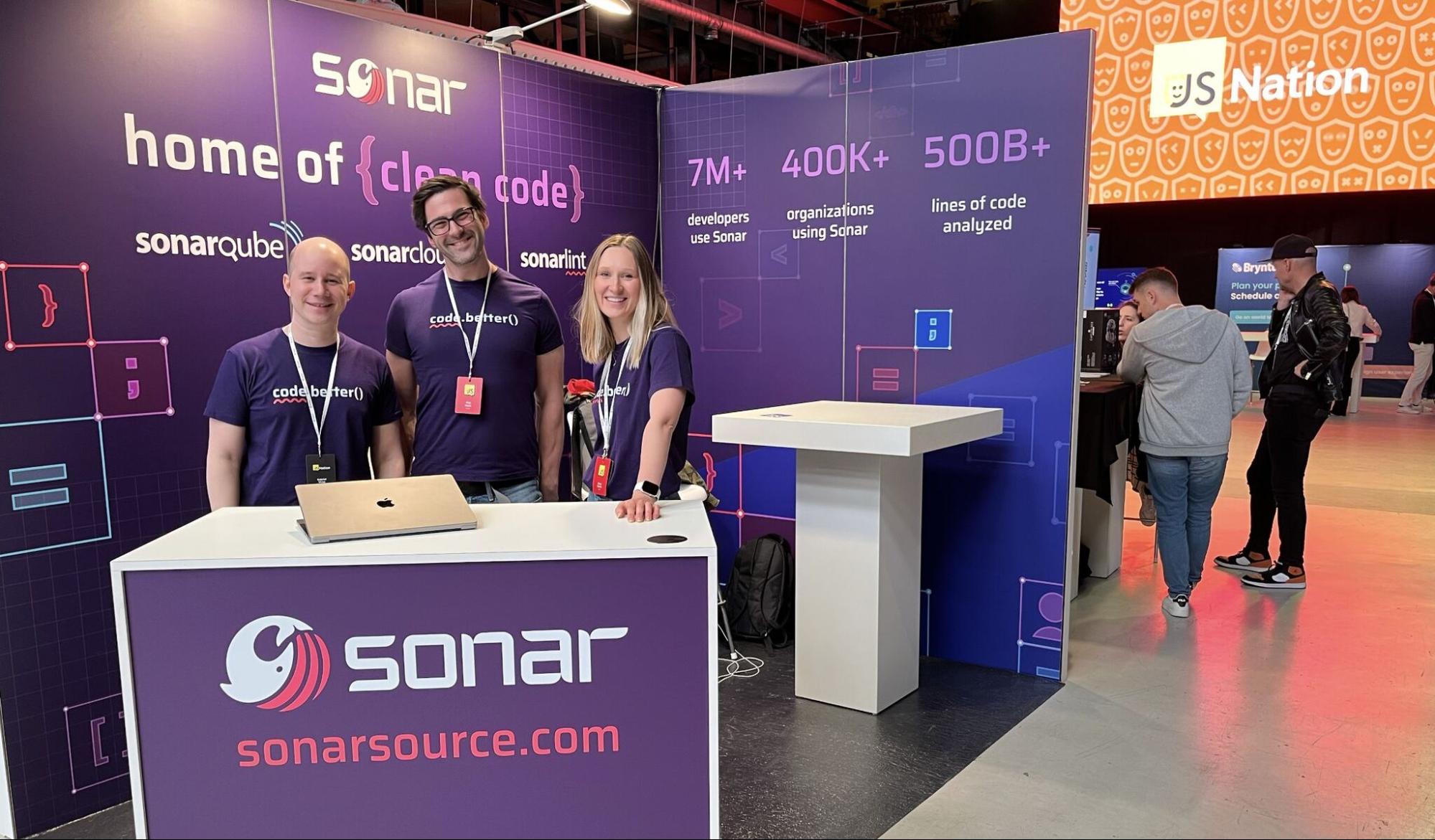 • Sonar's JavaScript and TypeScript languages team attended JSNation 2023 in Amsterdam, sponsoring the conference and engaging with the developer community on code quality topics.