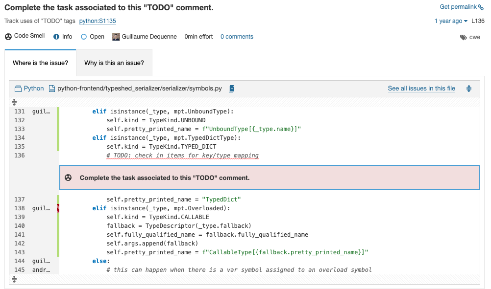 In SonarQube Server 8.9 LTS, this information was calculated at analysis time, which was expensive. It also wasn’t possible to collect all the information available, such as conditional type information based on the version of Python being used.