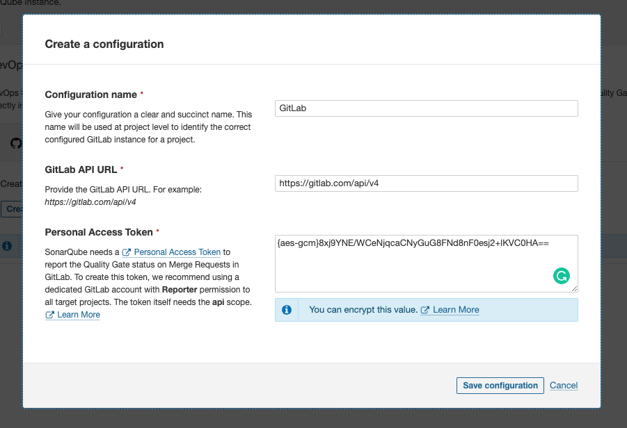 DevOps Platform Secrets (like Personal Access Tokens) could previously only be stored in SonarQube Server’s database in plain text. In SonarQube Server 9.9 LTS those secrets can be encrypted like any other setting, keeping them safe in the event of a security incident.