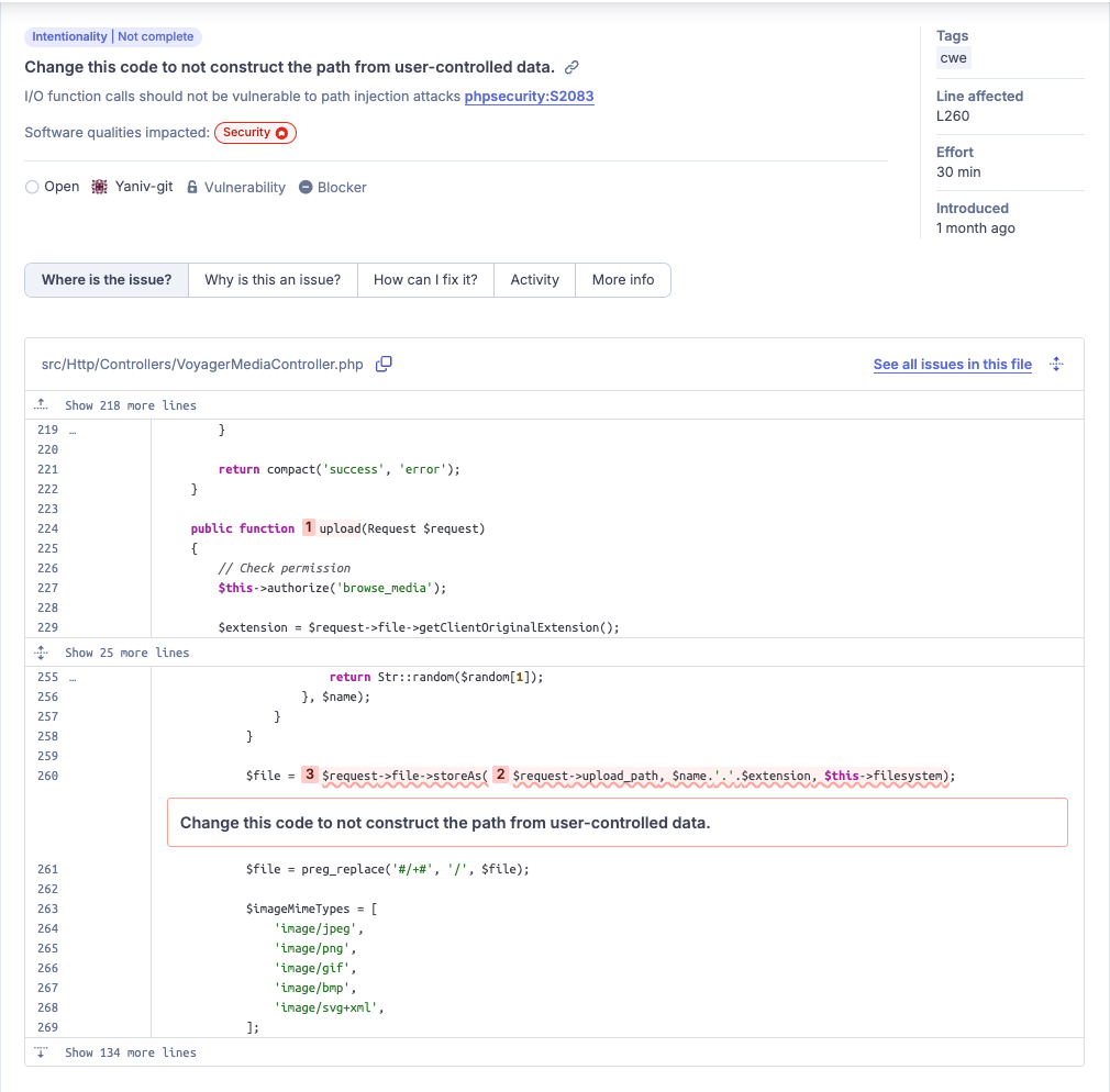 • During our continuous scans, SonarQube Cloud reported an arbitrary file write vulnerability in Voyager.
