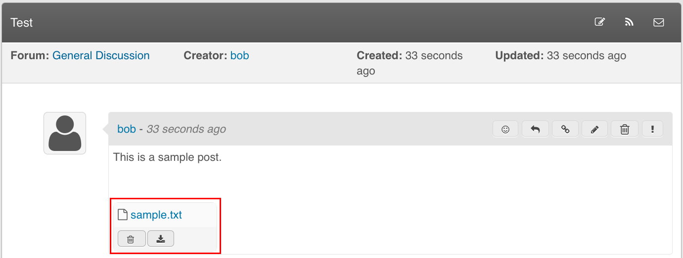 Posts added to a discussion can have an optional file attachment: