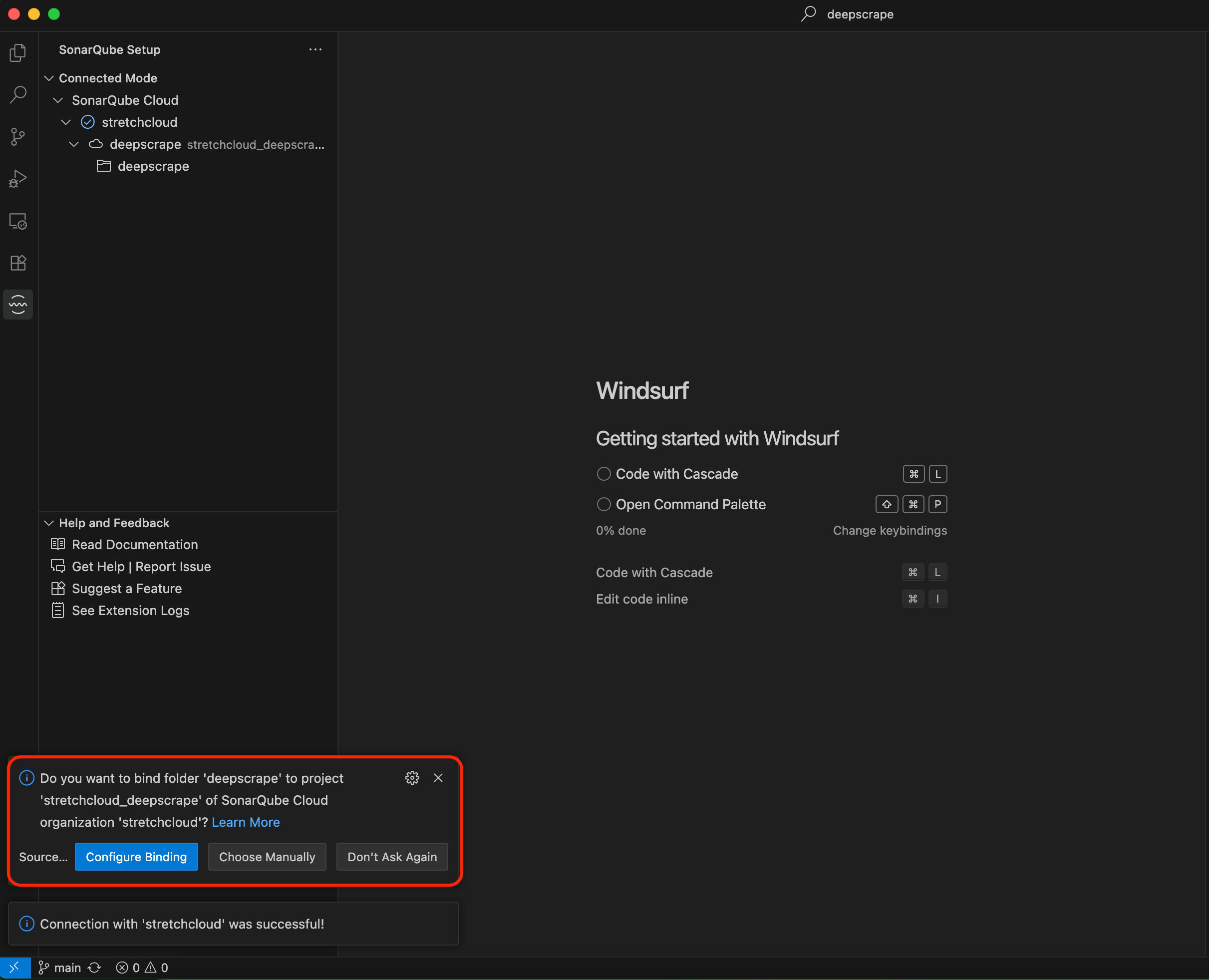 Step 2: Connecting Windsurf to your SonarQube Cloud