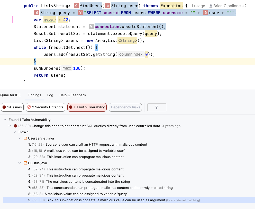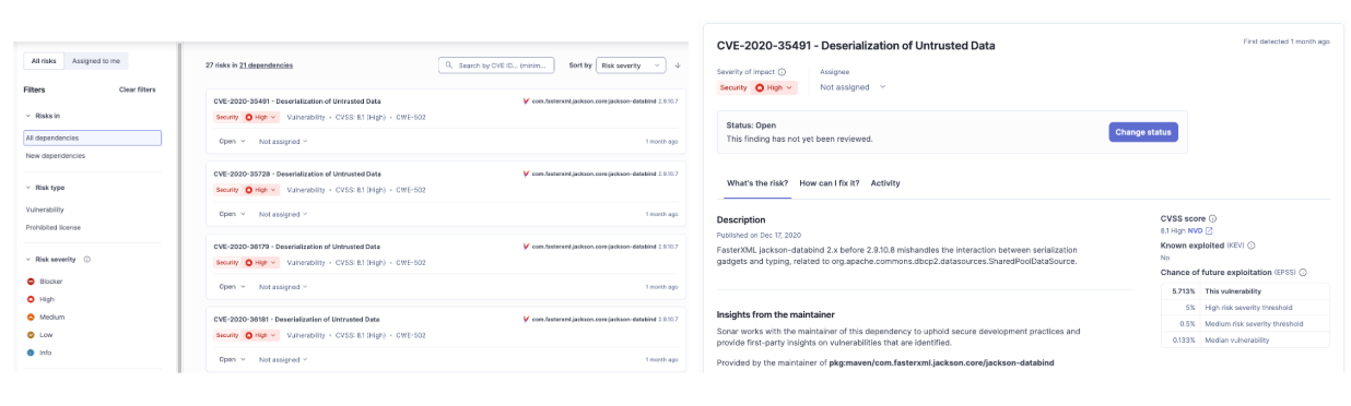 SonarQube Advanced Security goes further by applying advanced static application security testing (SAST) to your dependencies. It uses taint analysis to trace the flow of data from your code into the library.