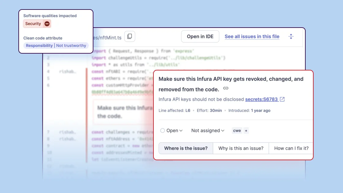 Focus on real issues, not false positives. SonarQube delivers highly precise, actionable reports directly in your workflow, helping you quickly remediate what truly matters.