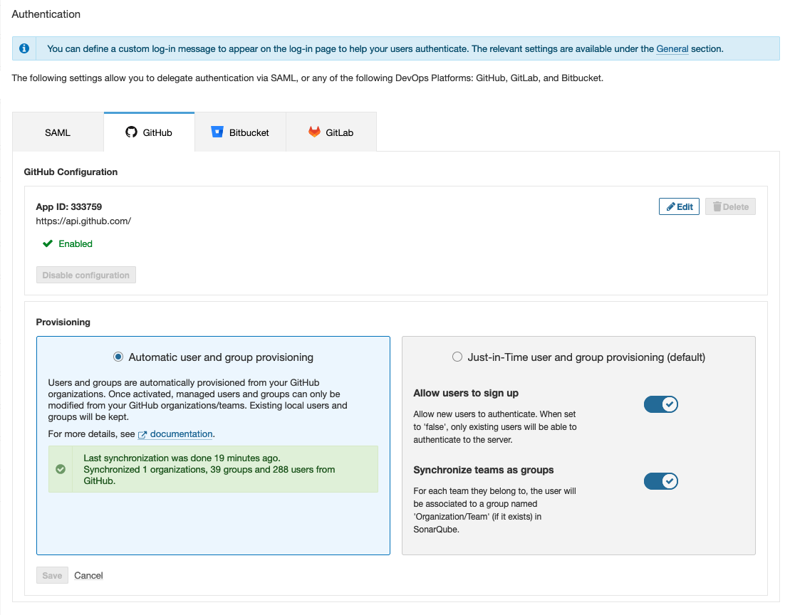 Admins for organizations that use GitHub will be glad to hear the support for automatic user & group provisioning and synchronization. When new users or groups are added in GitHub, admins no longer have to manually add those users and groups in SonarQube Server. Admins can now fully delegate this management to GitHub for secure and centralized provisioning of users and group sync.