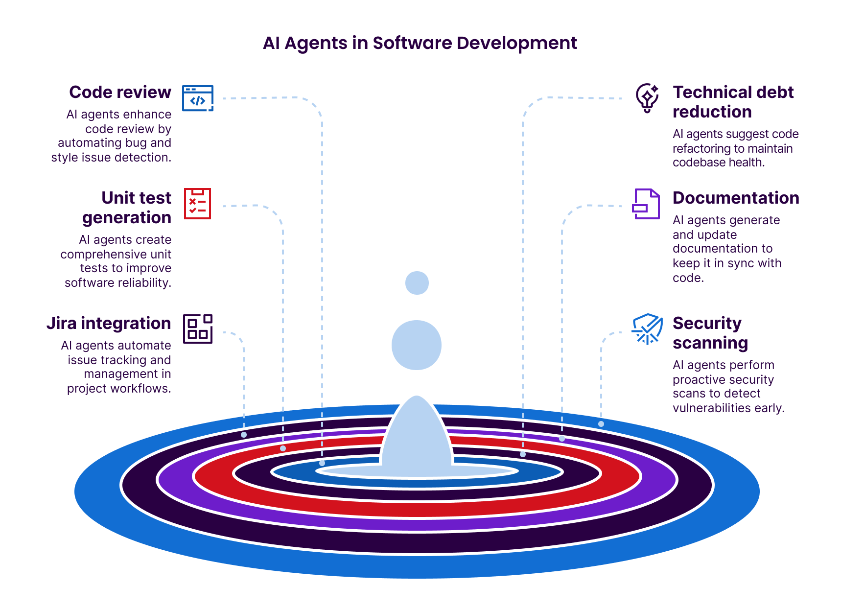 AI agents are not just a futuristic concept; they are already starting to offer practical solutions to real-world challenges in software development. This section explores specific ways AI agents can be used throughout the Software Development Lifecycle (SDLC) to boost efficiency, improve code quality, and generally make the development process smoother and more reliable.
