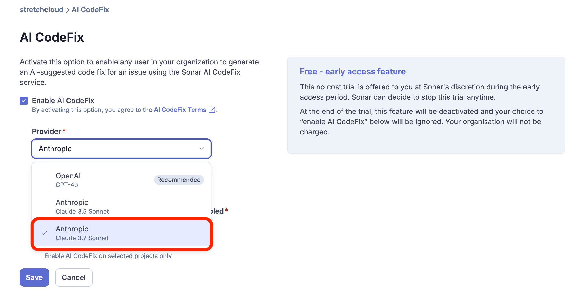 Enabling Anthropic Claude 3.7 Sonnet for AI CodeFix