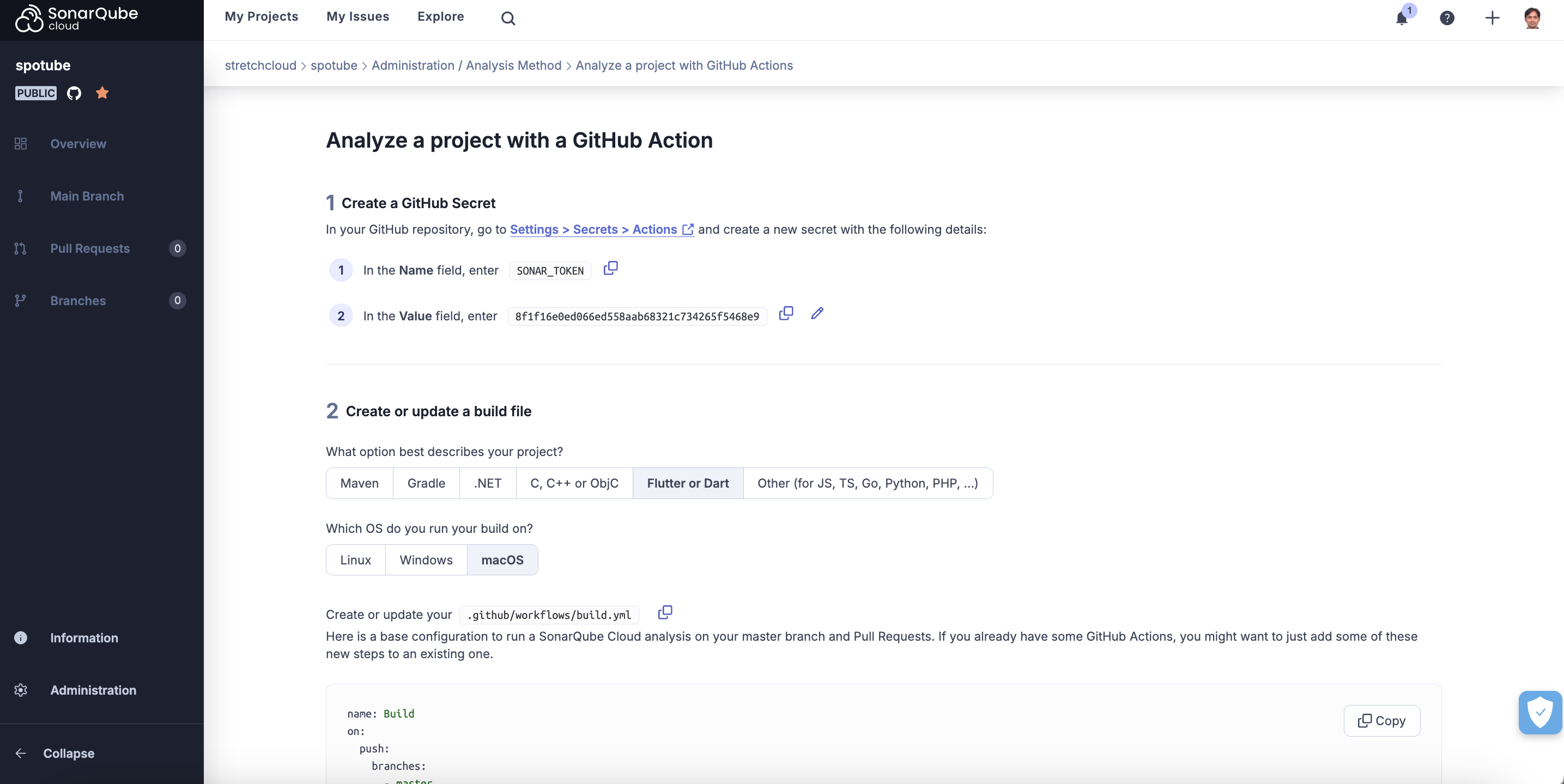 If you either wish to select CI based analysis because the automatic analysis doesn’t support the language such as flutter/dart or because of your DevOps methodology, you need to create additional configuration.