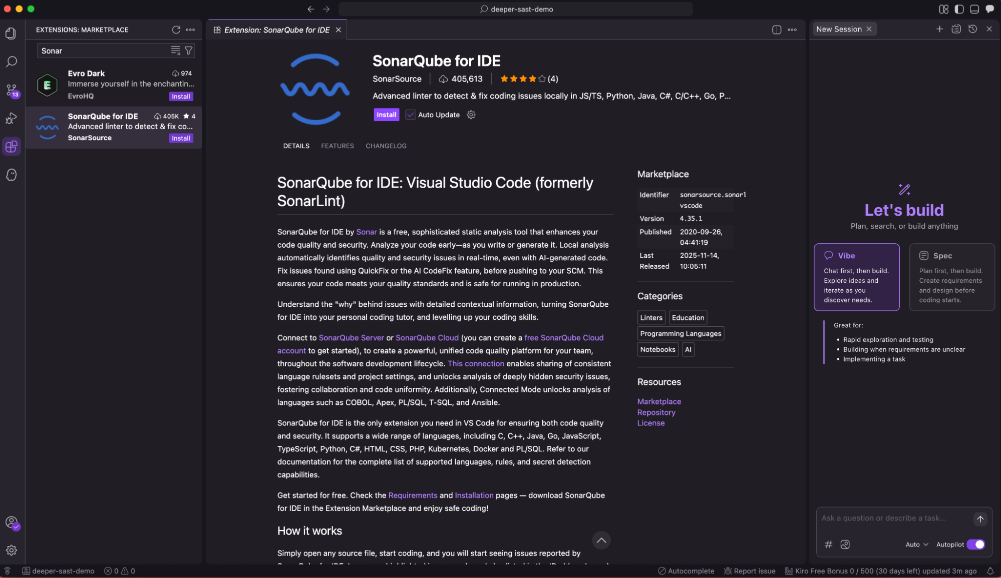 Integrating SonarQube for IDE into Kiro represents a perfect synergy of speed and stability. Kiro’s spec-driven development and agentic capabilities allow you to iterate on features rapidly, while SonarQube ensures that this velocity doesn’t result in technical debt.