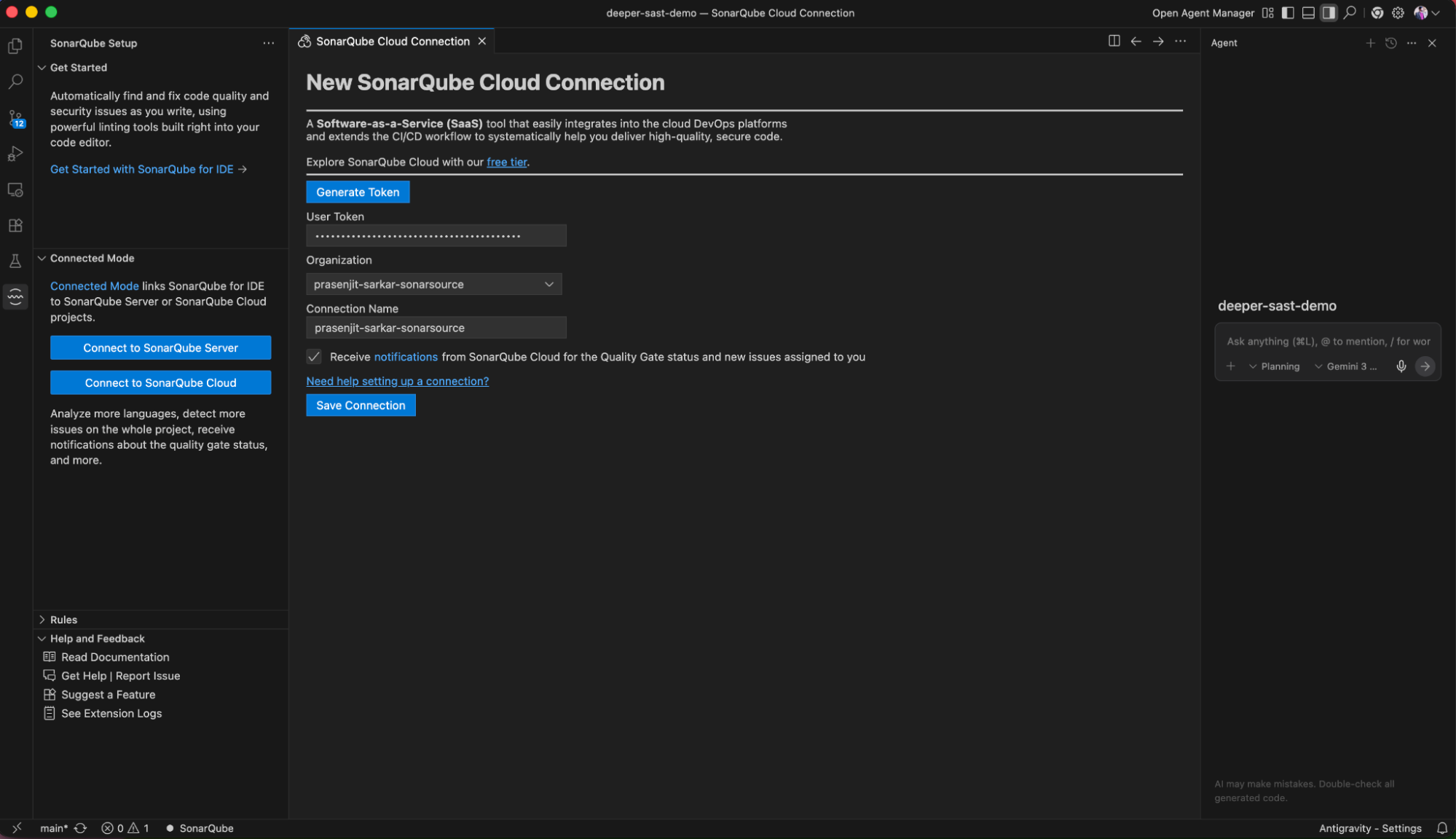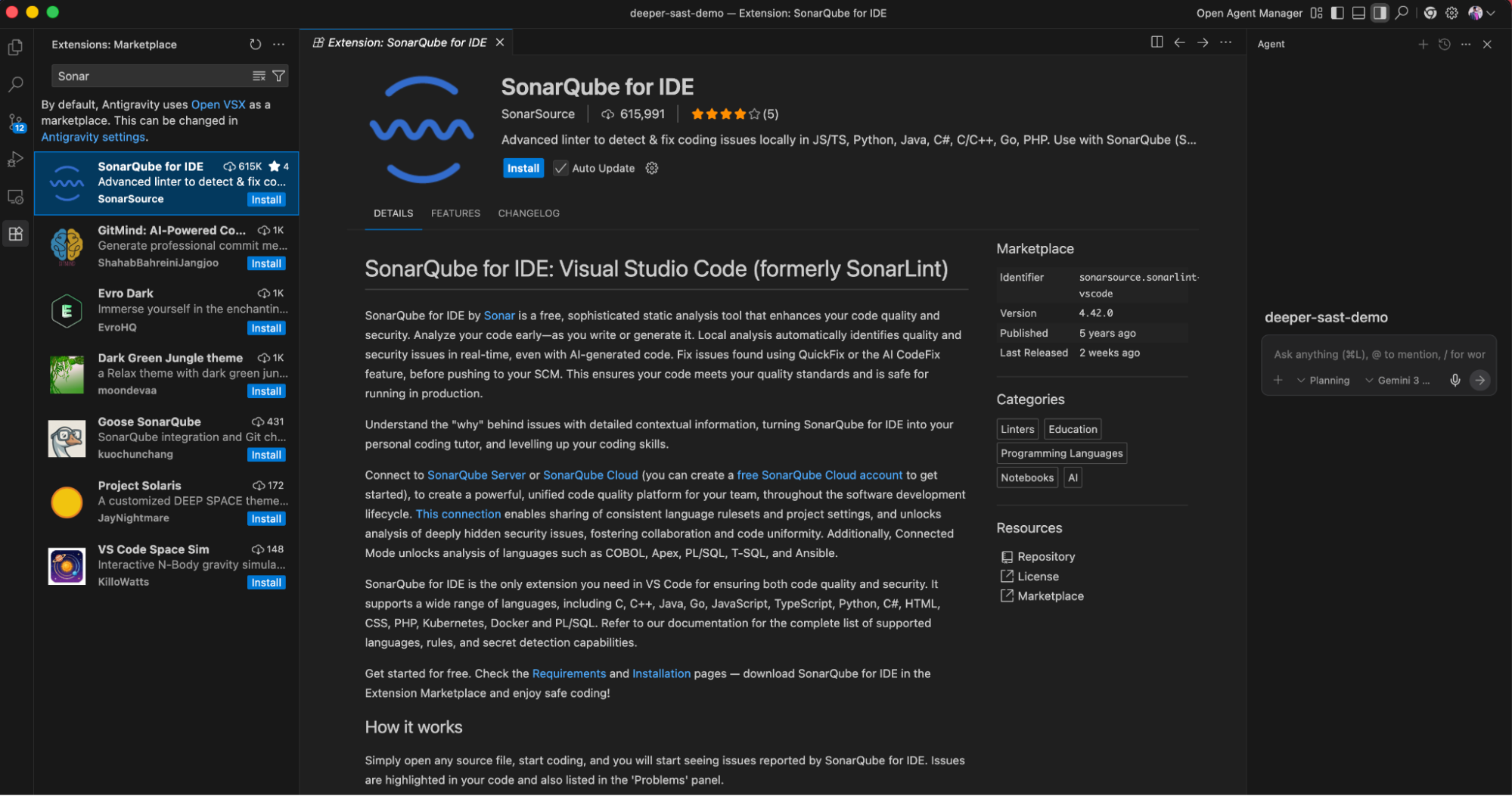 By installing SonarQube for IDE in Google Antigravity, you effectively deputize the editor to act as a rigorous code reviewer. This setup ensures that the speed of AI generation does not compromise the code security or maintainability of your software. You can now trust the agent to build fast, while verifying—in real-time—that it builds right.