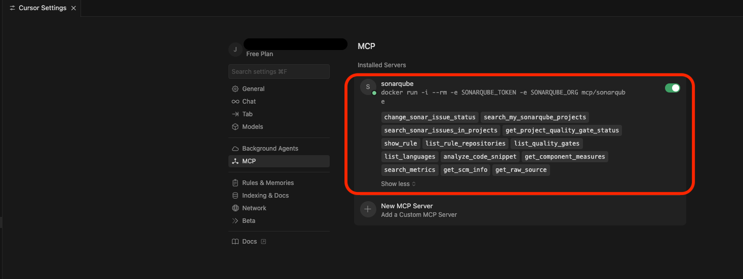 Cursor is designed to simplify integration with MCP servers. The best part is that SonarQube MCP Server’s GitHub repository provides “Deploy to Cursor” buttons for automated setup.