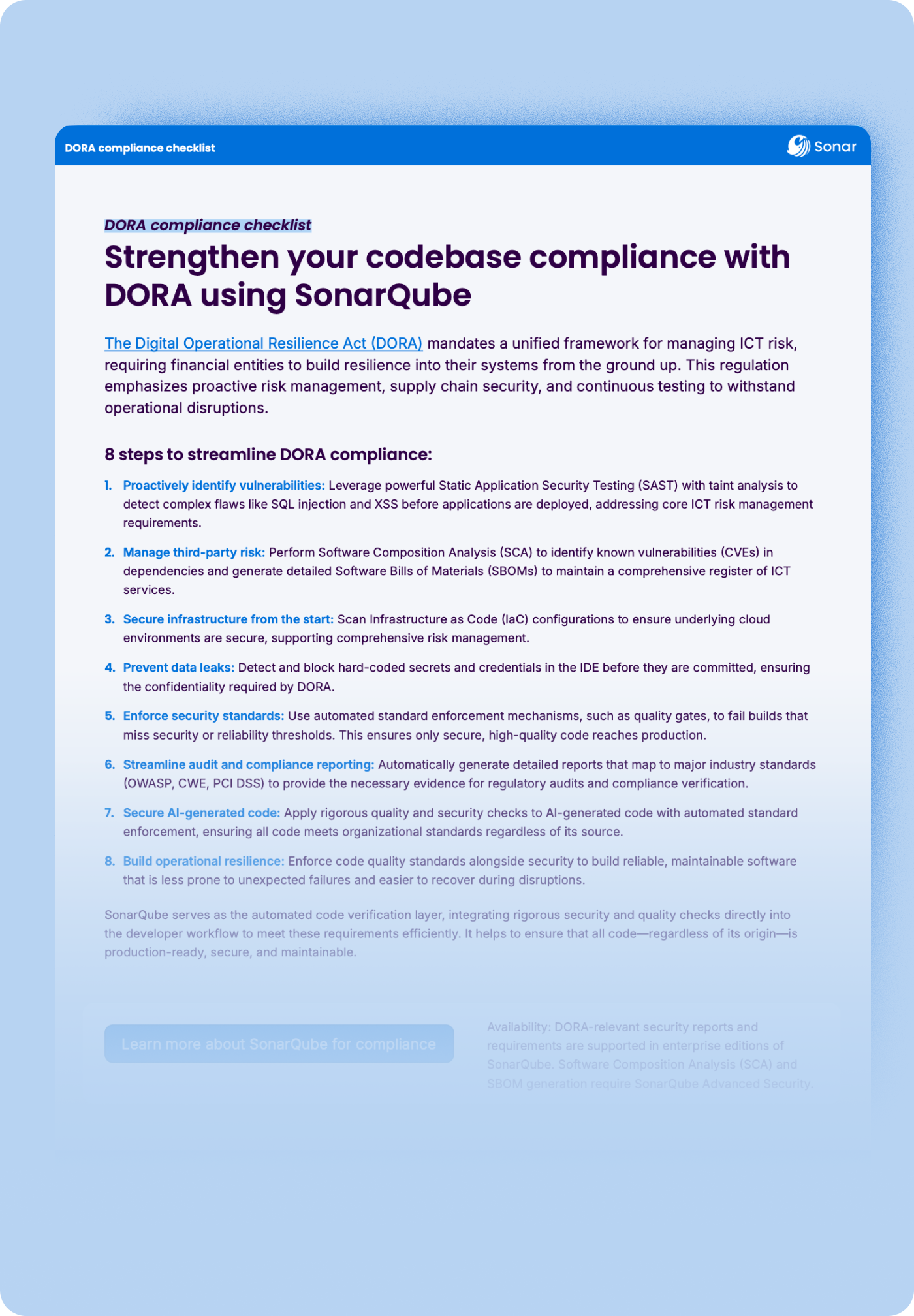 Strengthen your codebase compliance with DORA using SonarQube