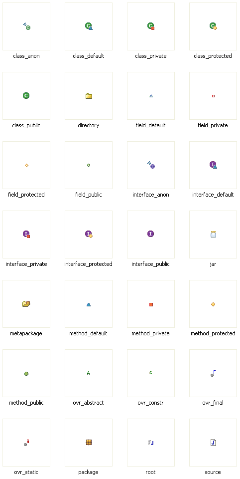 The following base icons are used to represent code items: