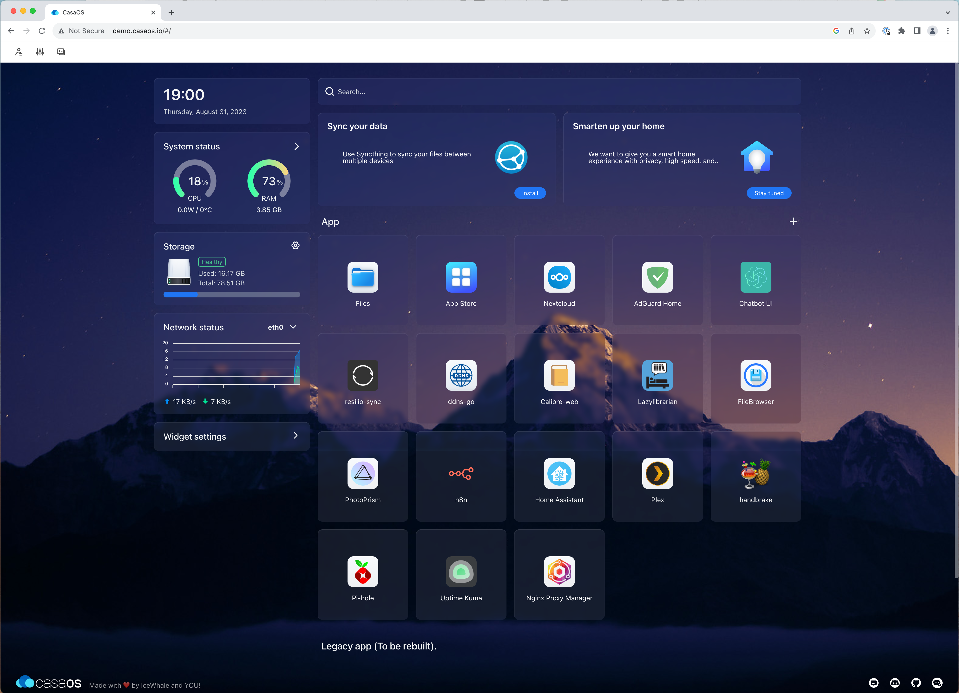 CasaOS is developed by IceWhale in Go and has close to 17,000 stars on GitHub as we're writing this article.